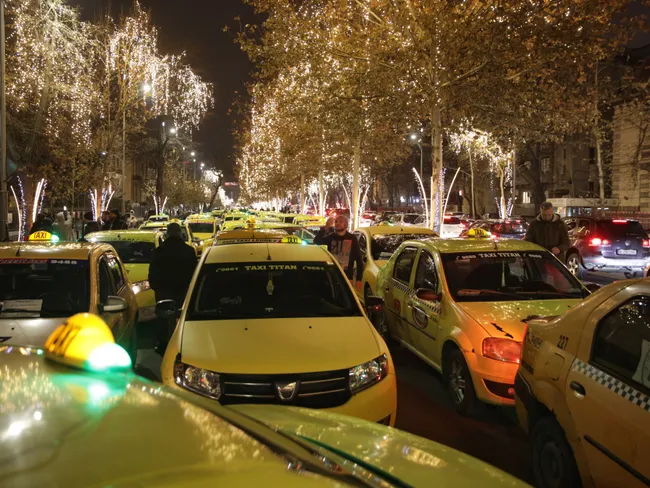 VIDEO Taximetriştii, protest faţă de Uber: Vom ieşi în fiecare seară