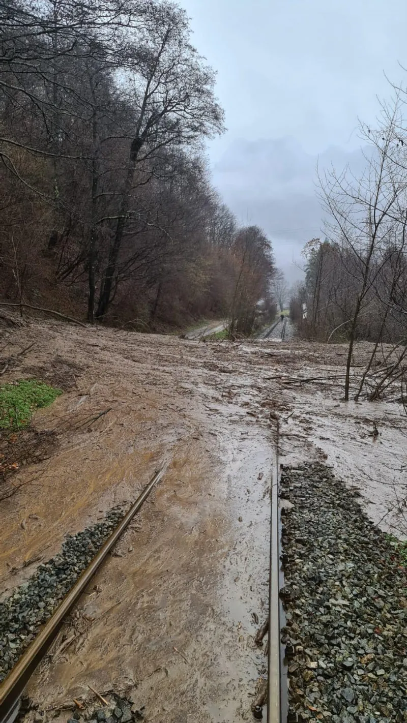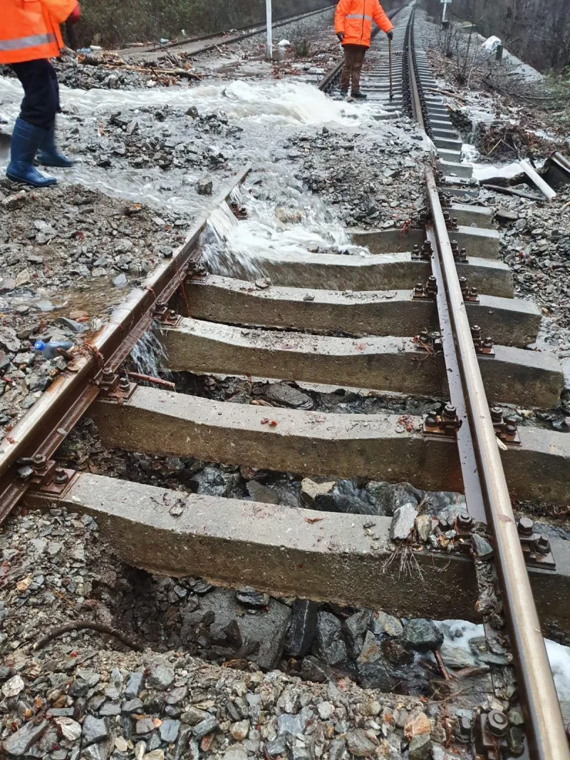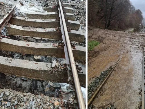 „Azi noapte, în jurul orei 03:30, din cauza aluviunilor căzute de pe versant, roţile locomotivei şi ale primului vagon ale trenului Regio 2069, care circulă pe ruta Râmnicu Vâlcea - Călimăneşti - Sibiu, au escaladat şina şi au rulat până la oprire în afara acesteia. În tren se aflau 9 călători. La acest moment, cinci trenuri ale CFR Călători sunt afectate din cauza condiţiilor meteo din zonă”, menţionează CFR Călători, într-un comunicat.