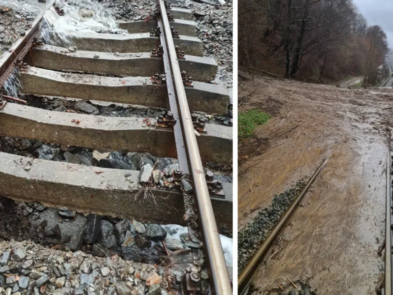 Din cauza grohotișului depus și a terasamentului spălat de torenți, au fost închise ambele fire de circulație, începând de marți, ora 7.00.