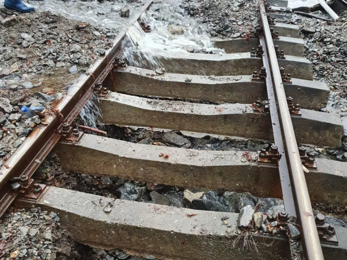 VIDEO Traficul feroviar, întrerupt între Călimănești și Cozia. S-a surpat terasamentul căii ferate