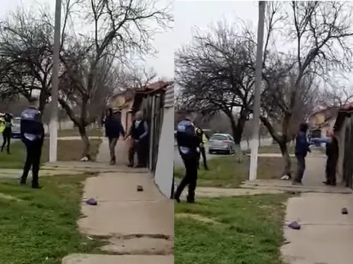 VIDEO Trei polițiști, printre care și o femeie, bătuți cu bastonul lor de un bărbat de 59 de ani