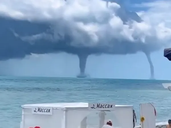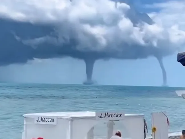 Mai multe trombe marine impresionante, cu aspect de tornadă, au fost filmate duminică de pe litoralul rusesc al Mării Negre. Mai mulţi martori, aflați aproape de fenomenul înfricoșător, au reușit să surprindă imagini spectaculoase.