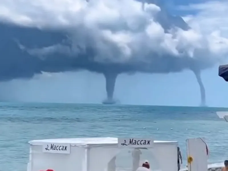 VIDEO Trombe marine uriașe, cu aspect de tornadă, filmate în largul Mării Negre