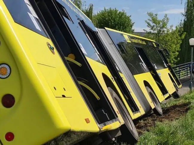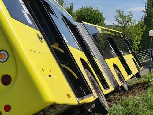 Un autobuz al companiei de transport local din Sibiu în care se aflau 30 de pasageri a ieșit de pe șosea, duminică, și s-a oprit pe un pasaj pietonal de pe malul râului Cibin, după ce şoferului i s-a făcut rău.