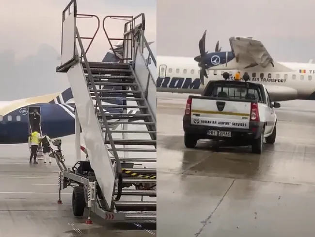 O sursă Newsweek ne-a transmis o filmare cu un avion avariat de furtună pe aeroport. Este vorba despre un avion ATR. Totul s-a întâmplat pe Aeroportul din Oradea.