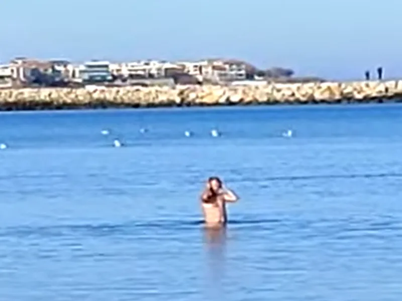 Vremea deosebit de calcă pentru această perioadă a anului i-a scos pe constănțeni le plimbare pe plajele orașului. Un bărbat a și făcut baie în mare și din imagini se poate vedea cum savurează momentul.