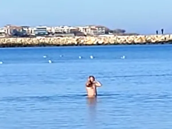 Temperatura a urcat chiar până la 17 grade, iar un bărbat a fost filmat când a făcut o baie în mare, chiar dacă apa este încă foarte rece.