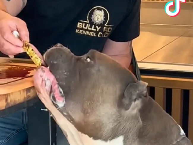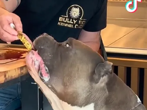 Zilele trecute un cățel rasa American Bully, a primit de la stăpânii săi vită în foiță suflată cu aur. Desigur, totul a fost filmat și postat pe Tik Tok.