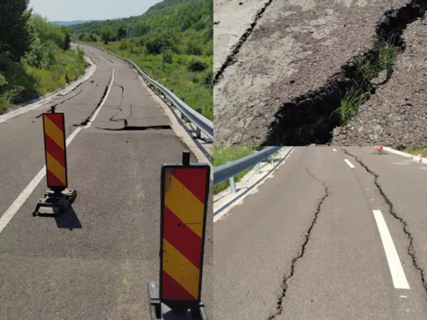 O porţiune dintr-un drum comunal recent modernizat a fost luată de ape la mijlocul lunii mai. Segmentul respectiv, în lungime de aproximativ 70 de metri, este acum marcat pentru că zona a devenit pericol public pentru traficul rutier. Ruperea carosabilului a determinat apariţia unor crăpături şi denivelări care depăşesc în unele locuri 20 cm.