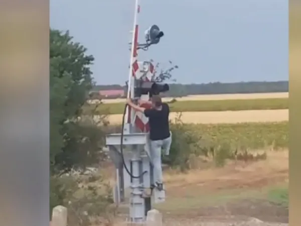 VIDEO Un mecanic se dă jos și coboară manual bariera ca să poată trece în siguranță cu trenul