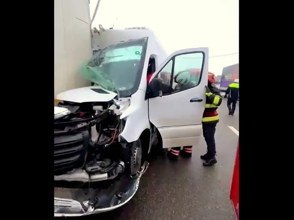 VIDEO Un microbuz s-a înfipt în remorca unui TIR pe E 85. 7 persoane grav rănite, duse la spital