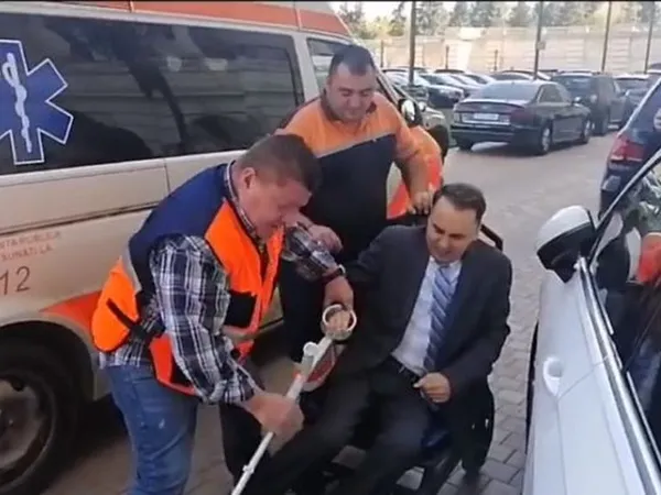 VIDEO Un senator PMP a venit cu ambulanța, de la Cluj-Napoca, pentru a vota moțiunea de cenzură
