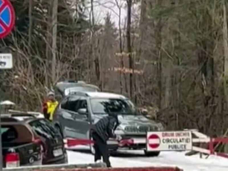 VIDEO Un șofer a fost surprins când taie bariera care blochează drumul spre Cota 1.400 din Sinaia