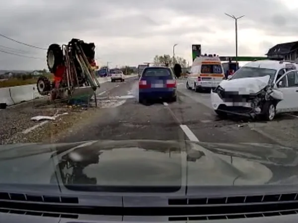La fața locului s-au deplasat polițiștii care au stabilit că un tânăr de 22 de ani, din Drobeta-Turnu Severin, în timp ce conducea un autoturism pe DN6, în localitatea Brădești, pe fondul altor preocupări în timpul condusului, a lovit un utilaj agricol, condus de un bărbat de 50 de ani, din Bumbești-Pițic, județul Gorj, care în urma impactului s-a răsturnat.
