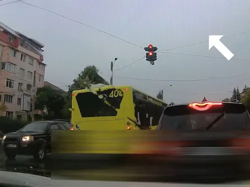 VIDEO Un șofer de autobuz nu are răbdare să stea la stop și trece pe roșu, blochează intersecția