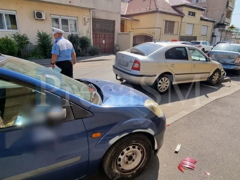 Un șofer tânăr a zdrobit 3 mașini dintr-o lovitură într-o zonă centrală din municipiul Satu Mare și a fugit de la locul accidentului. Poliția îl caută.