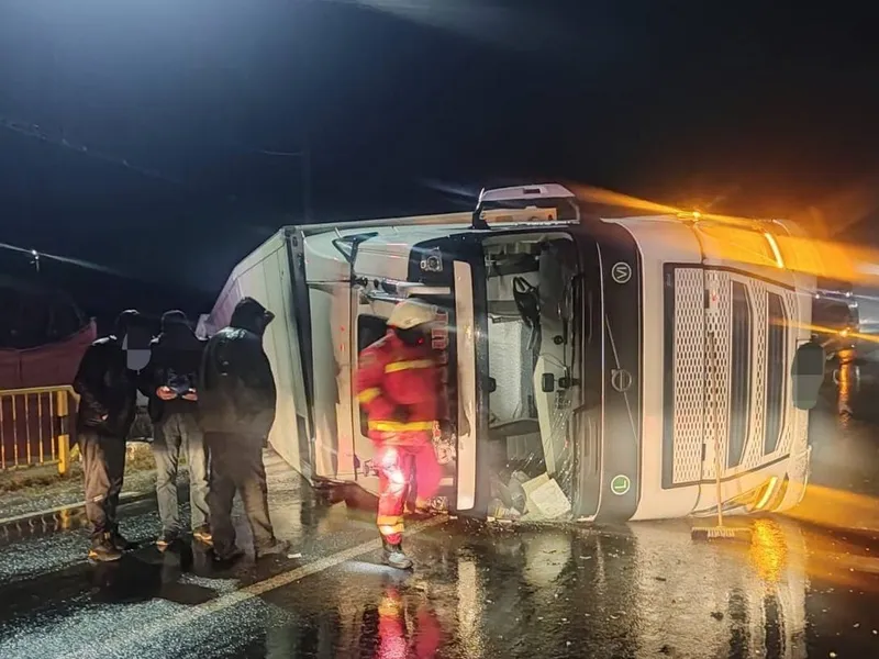 La sosirea pompierilor, șoferul autotrenului a refuzat evaluarea medicală.