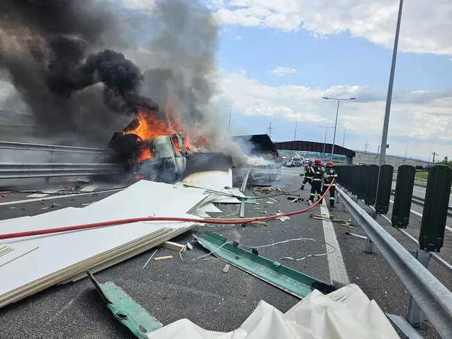Un TIR a explodat după ce a lovit un parapet și un indicator rutier pe A10 Sebeș-Turda, în Alba Iulia.