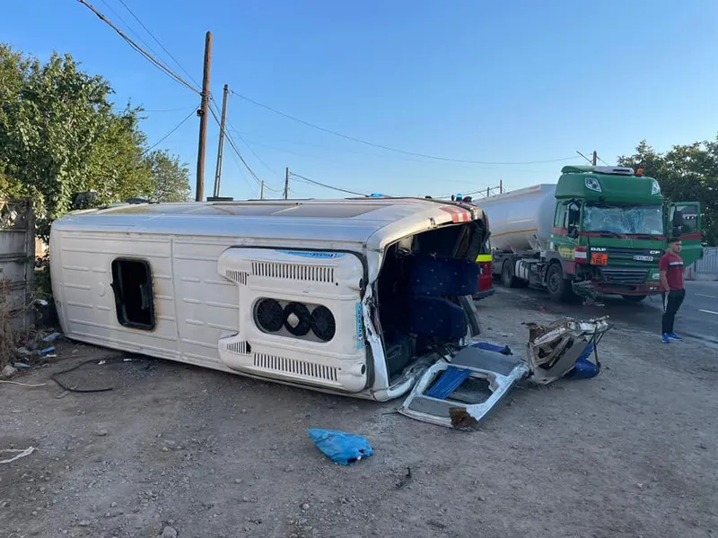 Poliţiştii din cadrul Serviciului Rutier Galaţi au stabilit faptul că un bărbat în vârstă de 30 ani, din Republica Moldova, în timp ce conducea un tir pe drumul menţionat, pe fondul neasigurării la schimbarea direcţiei de mers, ar fi intrat în coliziune lateral spate dreapta cu un microbuz transport persoane intrajudeţean, ce era condus regulamentar de un bărbat în vârstă de 35 ani.