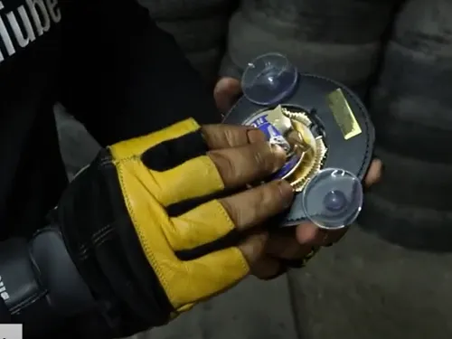 Pentru testare a fost folosită o insignă similară cu cele pe care le poartă polițiștii, pusă pe niste cauciucuri.