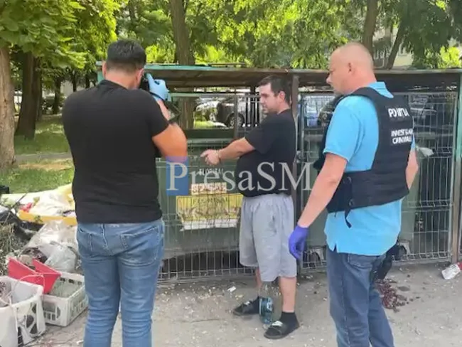Criminalul și-a schimbat hainele pline cu sânge și le-a aruncat într-un container de lângă garajul său din Cartierul Micro 14.
