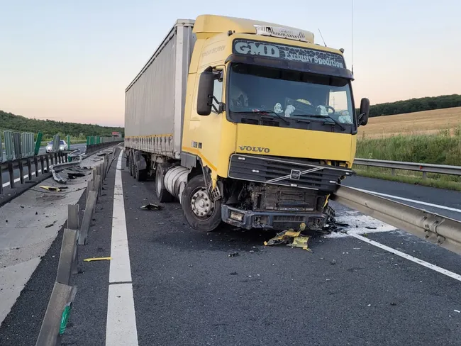 Din fericire, nu au fost implicate și alte vehicule, iar singurele pagube sunt cele materiale, parapetul metalic al autostrăzii și capul tractor al camionului.