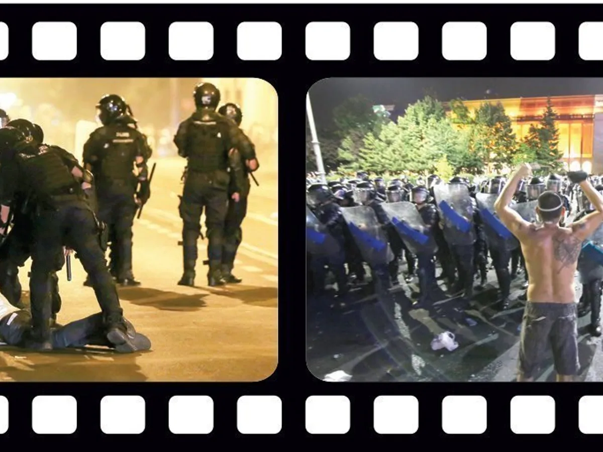 Protestatarii din primele rânduri își cumpărau măști. Pe străzile din jurul pieței, oamenii fug înnebuniți, la ambulanțe, sunt oameni transportați pe tărgi sau aduși pe brațe de protestatari. Unii, loviți de bucăți de plastic din grenadele cu gaze, alții, loviți de cartușe. În aer, se văd semnale luminoase.