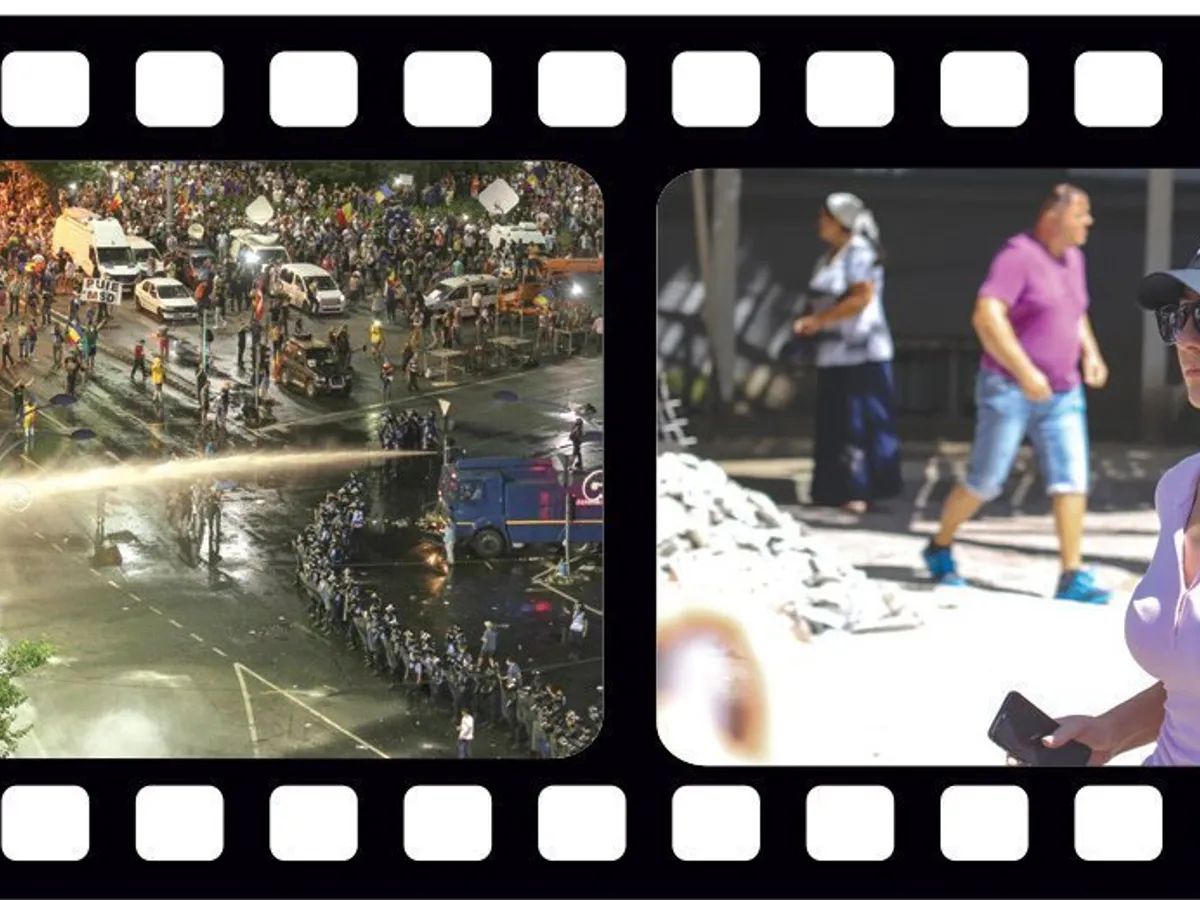 Aproape de ora 19.00, un grup de persoane violente a aruncat cu gardurile de metal în jandarmi, iar ei au ripostat cu lacrimogene și un tun cu apă. Odată cu lăsarea serii, jeturile de gaze au devenit tot mai dese. După 20.30, jandarmii au dat cu gaze în piață la cel mult 15 minute. Oamenii și-au tras tricourile pe față, scandând împotriva Guvernului PSD, înjurând cu sete. Apoi s-au lăsat la pământ, tușind puternic, cu ochii injectați. Dar nu au plecat. Alex și Ema își amintesc coada kilometrică de la farmacia din piață.