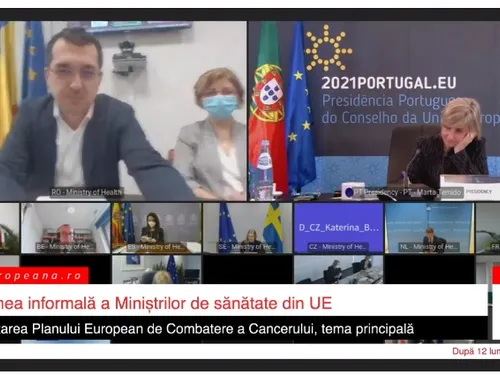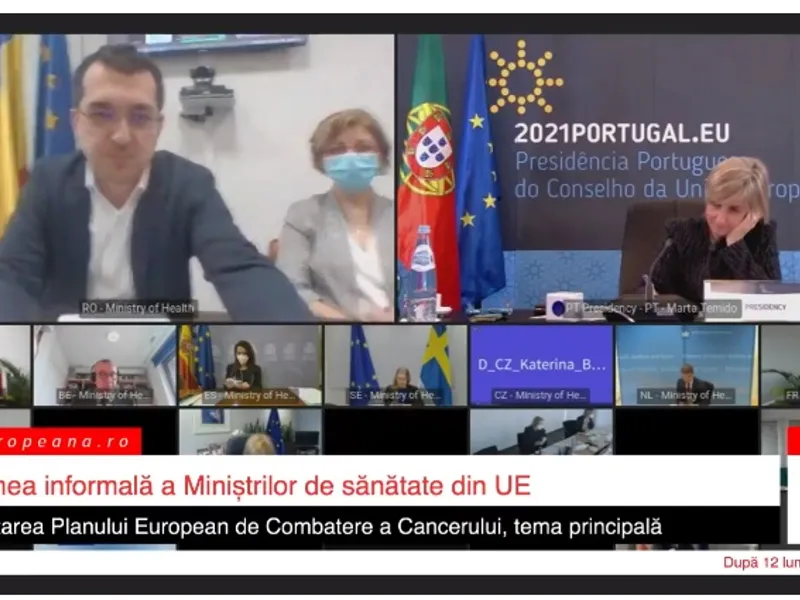 În înregistrarea videoconferinței apar și alți ministri UE fără mască, însă aceștia apar singuri în cadru.