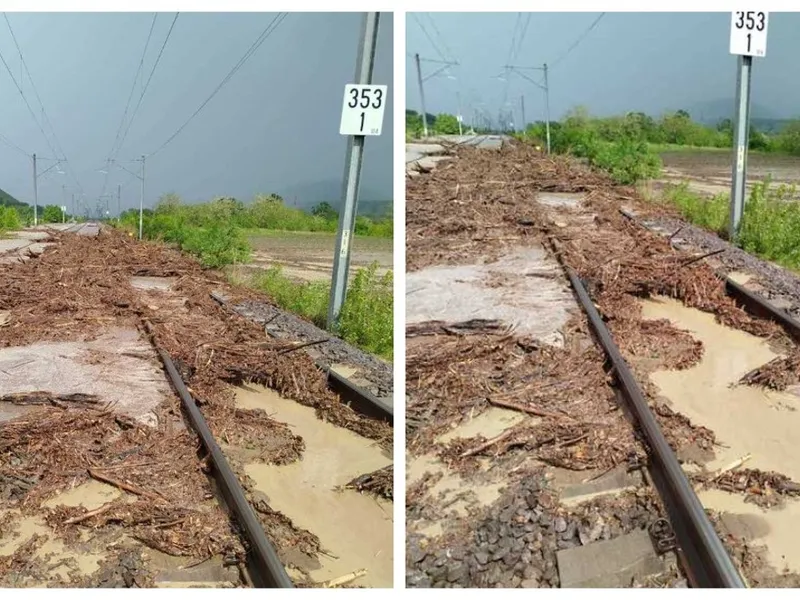 Viitură puternică în Alba și Sibiu, după ploile torențiale! Circulația feroviară a fost stopată temporar, iar trei trenuri de călători au fost oprite în cele două stații.