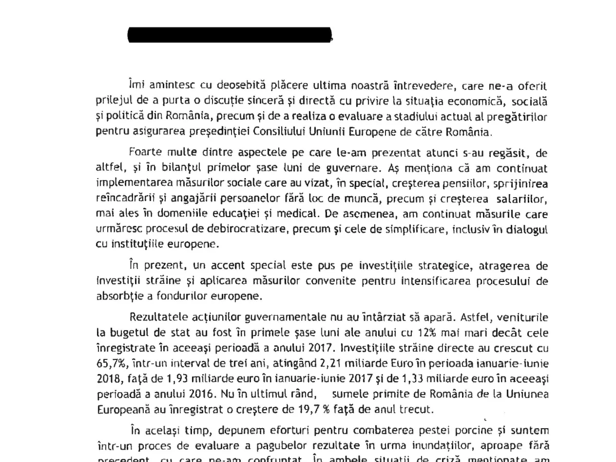 Iată documentul integral trimis de Viorica Dăncilă (potrivit G4Media)