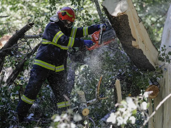 Vreme extremă în București. 19 copaci, puși la pământ de vânt. 8 mașini au fost avariate