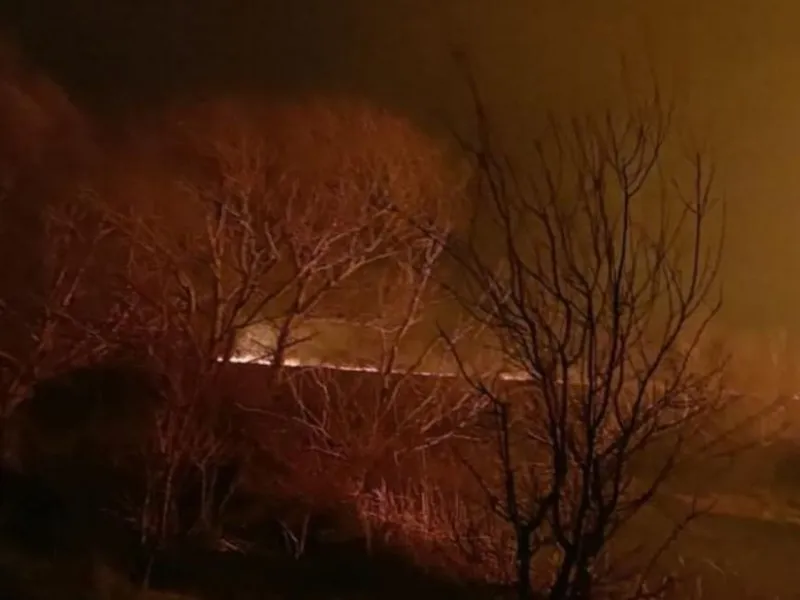 Zeci de hectare de stuf au luat foc în Deltă: Autoritățile cred că incendiul a fost provocat voit