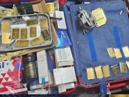 Autoritățile de frontieră din cadrul Aeroportului Internațional Traian Vuia Timișoara au descoperit, în bagajul de cală al unui bărbat, 42 de lingouri presupuse a fi din aur, pe care aceasta nu le-a declarat autorităților competente la ieșirea din țară.