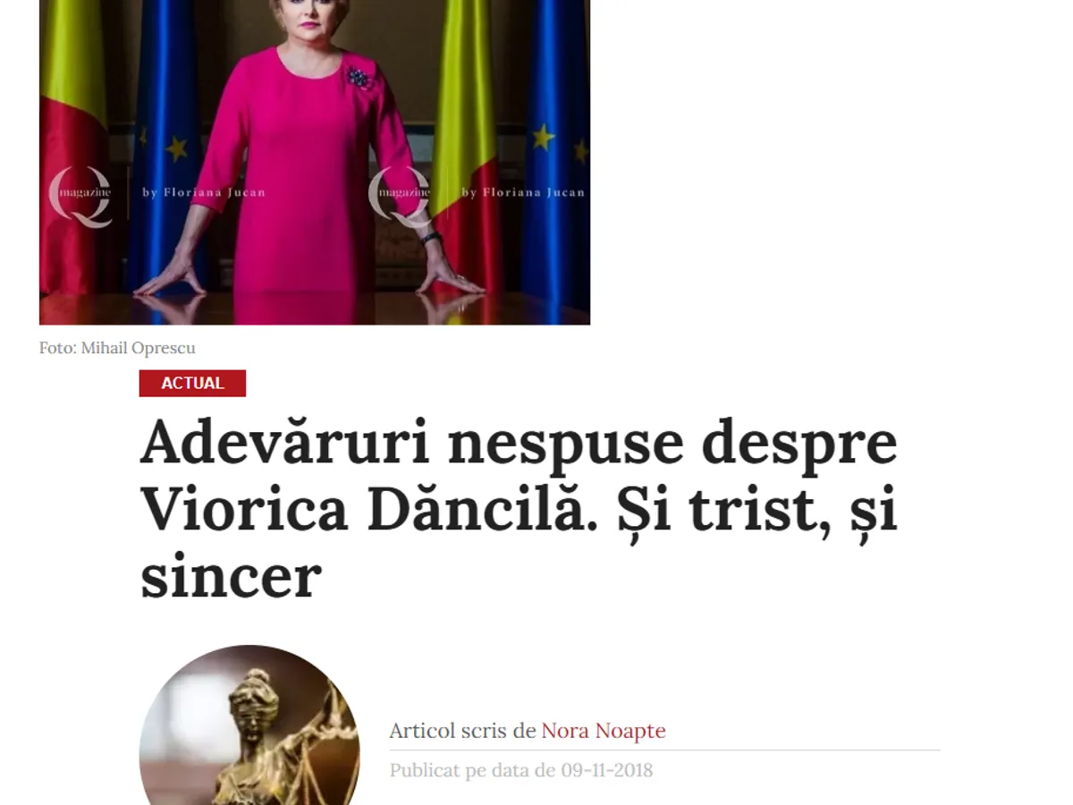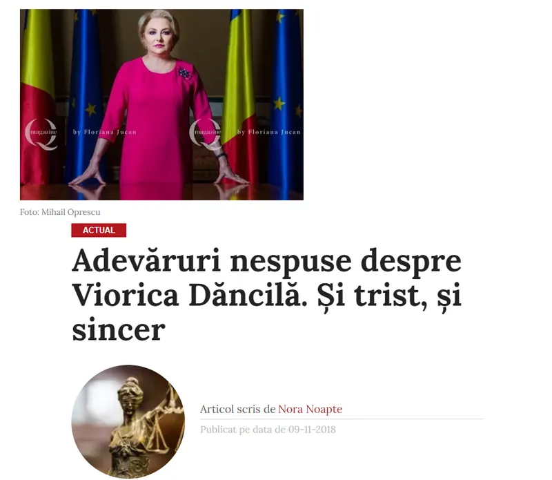 Într-un elogiu la adresa Viorcăi Dăncilă, Nora Noapte, pseudonimul Flroianei Jucan, scria la 11 noiembrie 2018: