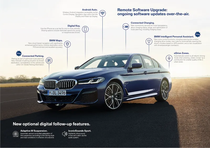 Pe mai multe pieţe internaţionale, BMW oferă deja clienţilor săi servicii digitale şi funcţii suplimentare pentru automobil sub formă de post-vânzare digitală, unele dintre ele fiind încorporate profund în software-ul maşinii. Exemple disponibile în prezent de aceste servicii sunt Asistentul de fază lungă, sistemul de asistare a condusului cu tempomatul activ (ACC) cu funcţie Stop & Go, BMW Driver Recorder, BMW IconicSounds Sport şi suspensia M adaptivă. În viitorul apropiat se vor adăuga funcţii suplimentare care pot accesa hardware-ul şi software-ul existente ale maşinii, cum ar fi anumite funcţii de confort sau sisteme de asistare a condusului.