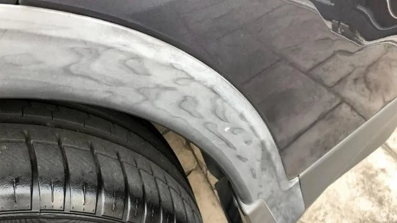 Cu timpul și din cauza soarelui, dacă nu este vopsit, plasticul din care sunt realizate diferitele elemente exterioare ale mașinii, precum parașocurile, protecțiile pentru pasajele roților sau carcasele oglinzilor retrovizoare exterioare, se decolorează. Capătă un look albicios.