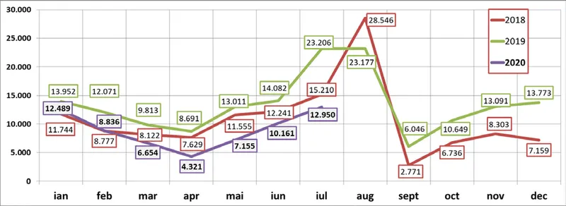 Prin urmare, per ansamblul primelor 7 luni din 2020, piața de vehicule comerciale a acumulat o scădere generală de 37%, concret fiind înmatriculate 9.848 de unități. Scăderea LCV este de (cele 26,8%.