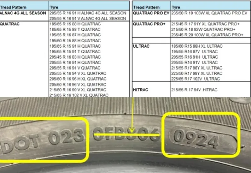 Reparația sau înlocuirea anvelopelor afectate va fi gratuită și va dura aproximativ o oră. Pentru a identifica anvelopele afectate, verificați gravura de pe flancul anvelopei. Anvelopele problematice au numărul DOT 023 și ultimele patru cifre 0924.