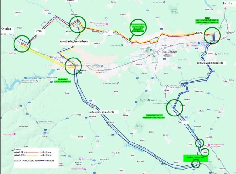 Trasee actuale folosite de traficul greu din Cluj-Napoca