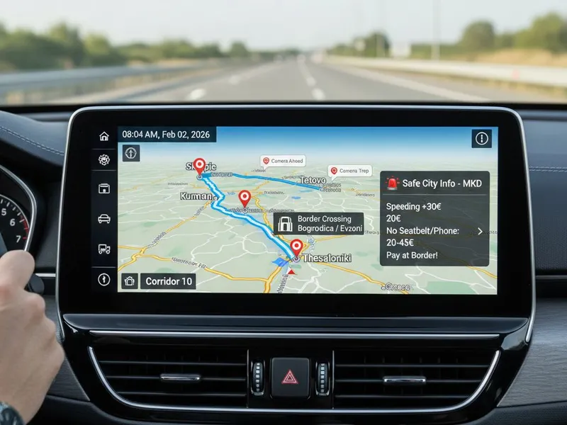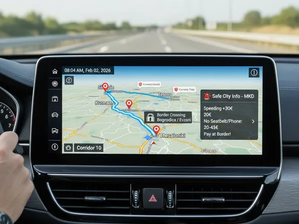 Recent, Macedonia de Nord, țară adesea traversată, de exemplu, de șoferii români în drum spre vacanța din Grecia sau Albania, s-a umplut de camere radar inteligente fixe. Sancționează viteza, centura, telefonul, iar amenzile trebuie plătite, cash sau cu cardul, la graniță.