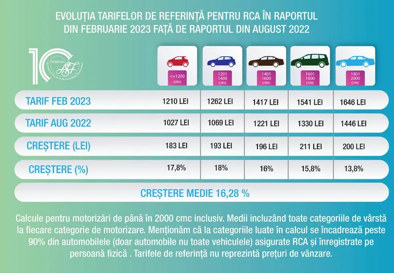 Evoluția tarifelor de referință RCA din august 2022 față de februarie 2023