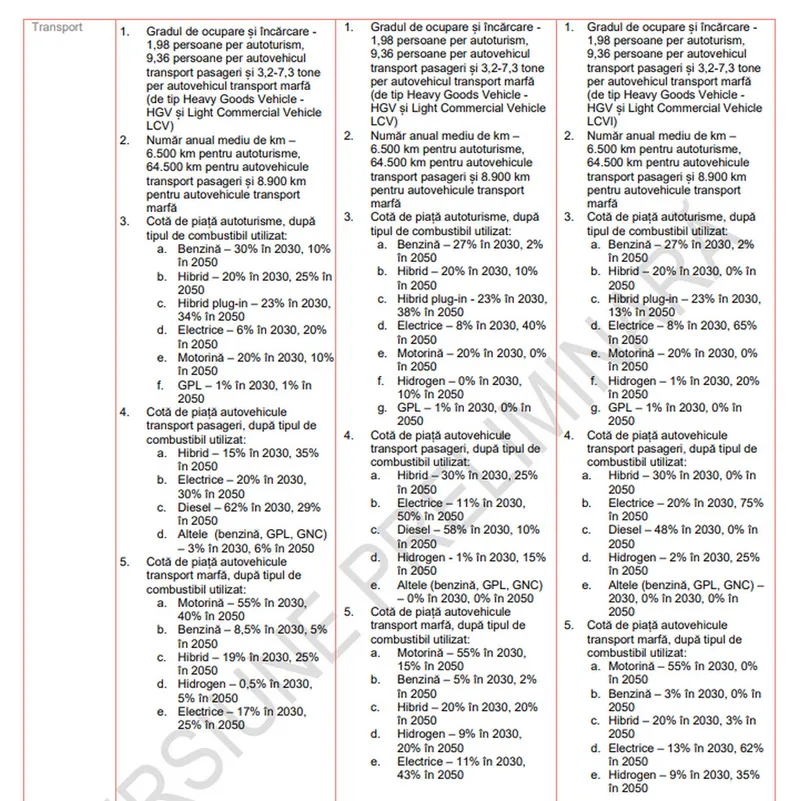 e. Altele (benzină, GPL, GNC) – 0% în 2030, 0% în 2050