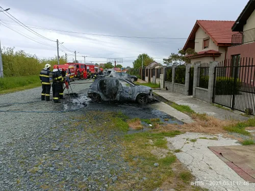 Mașina sa Dacia Spring a luat foc în mers, din senin, chiar în fața casei, în timp ce la volan se afla soția sa, iar în spate, fiul său.