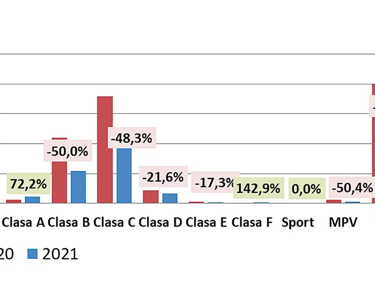 Urmează automobile de clasă C (compact), cu 29%, și cele de clasă B (mașini mici), cu 17,2%. Cea mai mare creștere, cu peste 140%, a fost înregistrată în segmentul F (mașini de lux), iar segmentul A (mini) a crescut și el cu peste 70%.