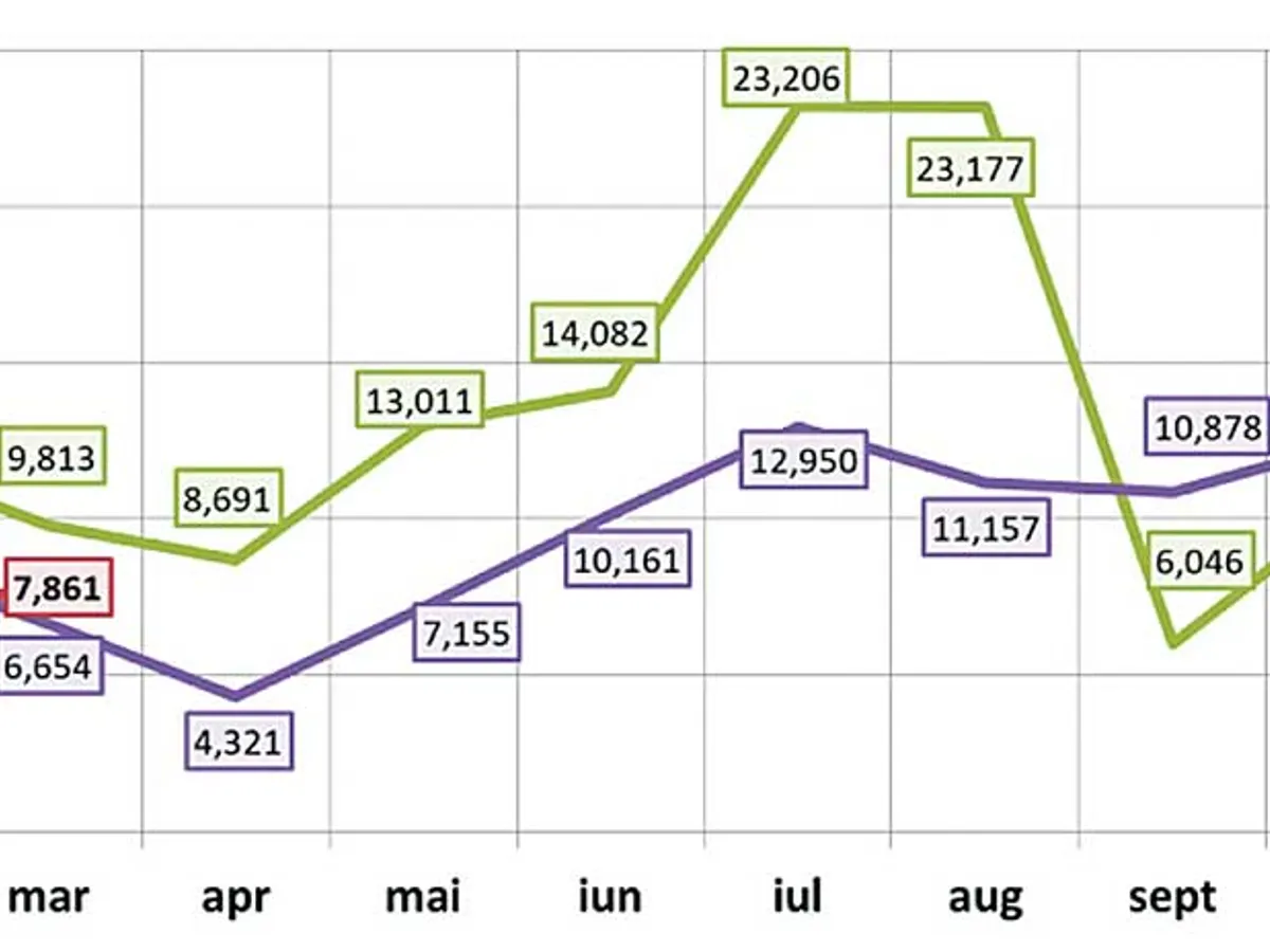 Pe locurile șase și șapte se află Volkswagen (1.548 unități) și Renault (1.049 unități).
