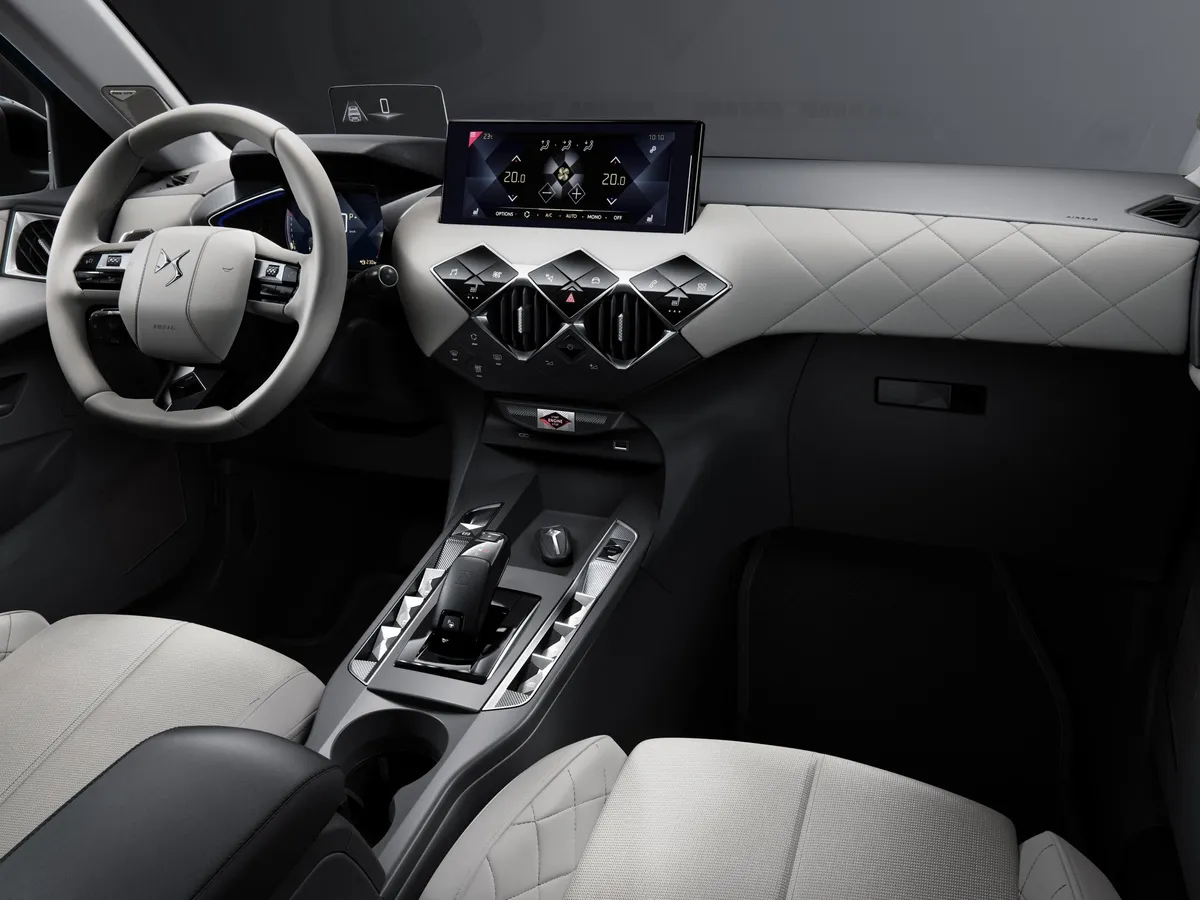 Cu o lungime de 4.118 milimetri, o lățime de 1.791 milimetri, o înălțime de 1.534 milimetri și un ampatament de 2.558 milimetri, SUV-ul este dominat în partea frontală de calandrul hexagonal, cu baza mică în sus, văzut și pe ”fratele” mai mare DS 7 Crossback, de parașocul sculptat agresiv și de blocurile optice DS Matrix LED Vision, care se adaptează în timp real la condițiile de drum și trafic, variind continuu intensitatea și unghiul de reflexie. DS afirmă că ar fi o premieră în segment.