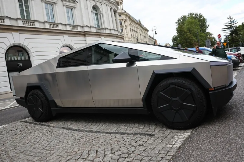 O mașină Tesla Cybertruck, parcată pe o stradă din capitala Poloniei, Varșovia, în vara acestui an - Foto: Profimedia Images