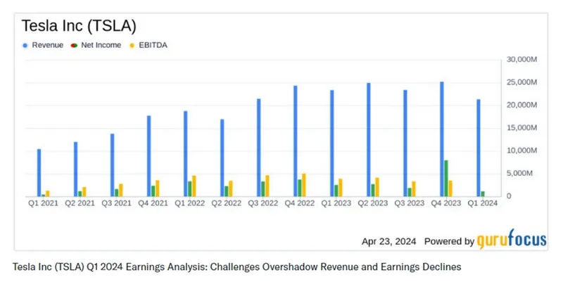 Tesla publicat rezultatele financiare pentru primul trimestru al anului 2024. Cifrele raportate arată o scădere semnificativă a principalilor indicatori financiari, sub așteptările analiștilor, atât în ceea ce privește câștigurile pe acțiune, cât și veniturile.