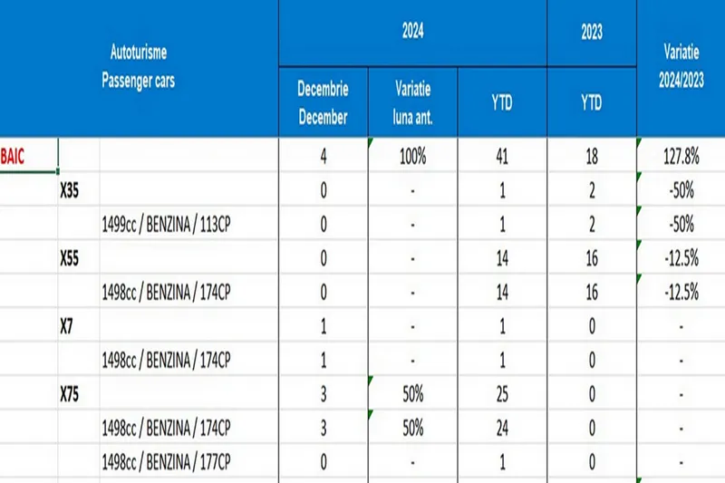 Modele BAIC noi înmatriculate în România în 2024